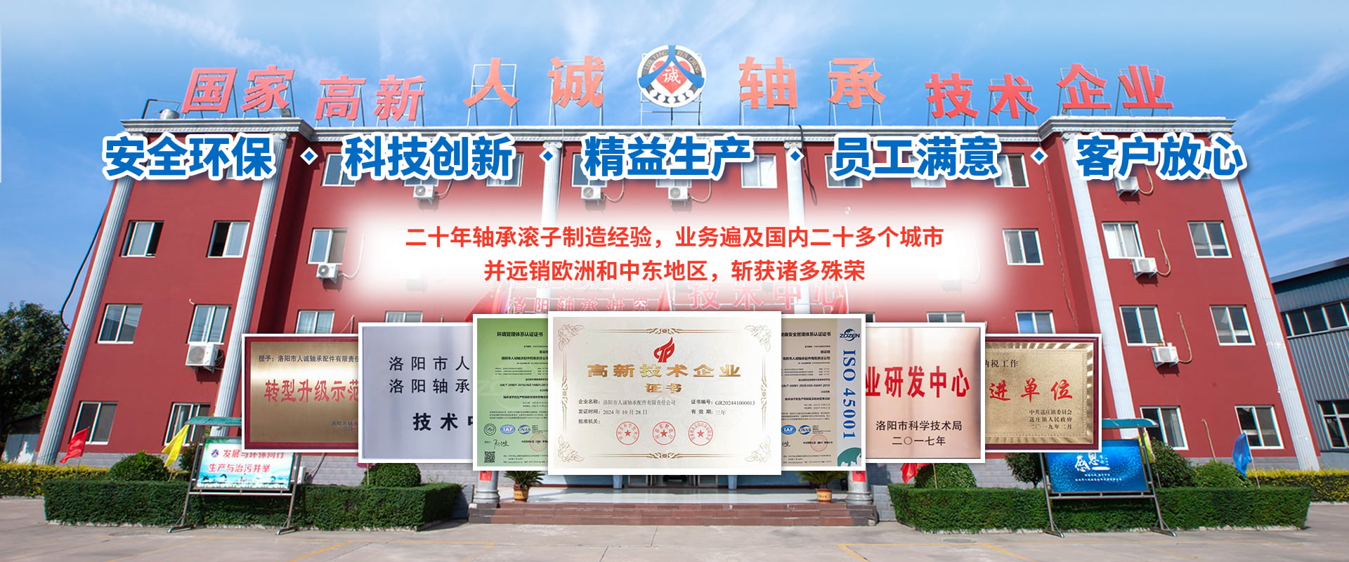 洛陽市人誠軸承配件有限責任公司成立于2003年,2015年由洛陽搬遷至孟津循環經濟區送莊鎮梁新路,占地60畝,建筑面積20000余平方米。公司專注生產高精圓錐軸承滾子,可根據客戶需求研發及來樣加工,年產精品滾子4億粒?! ∥覀兪冀K堅持“安全環保、科技創新、精益生產、員工滿意、客戶放心”的經營理念。先后與河南科技大學、洛陽師范學院、方智測控合作,并與國家洛陽軸承研究所聯合成立“技術中心”,建立了良好的產學研合作機制,為公司的創新發展打下了堅實的基礎?! ?018年公司被認定為國家高新 技術企業,通過了IATF16949:2016質量管理體系、環境管理體系、職業健康安全管理體系、知識產權管理體系等多項認證。擁有完善的檢測手段,先進的工藝,穩定的設備,優良的服務。公司董事長葉會卿為洛陽市工商聯副主席,洛陽市軸承滾子行業協會會長,法人李愛芳女士從事軸承滾子制造30余年,積累了豐富的生產管理經驗,誠實守信、務實、合作、共贏的作風深受業界好評。